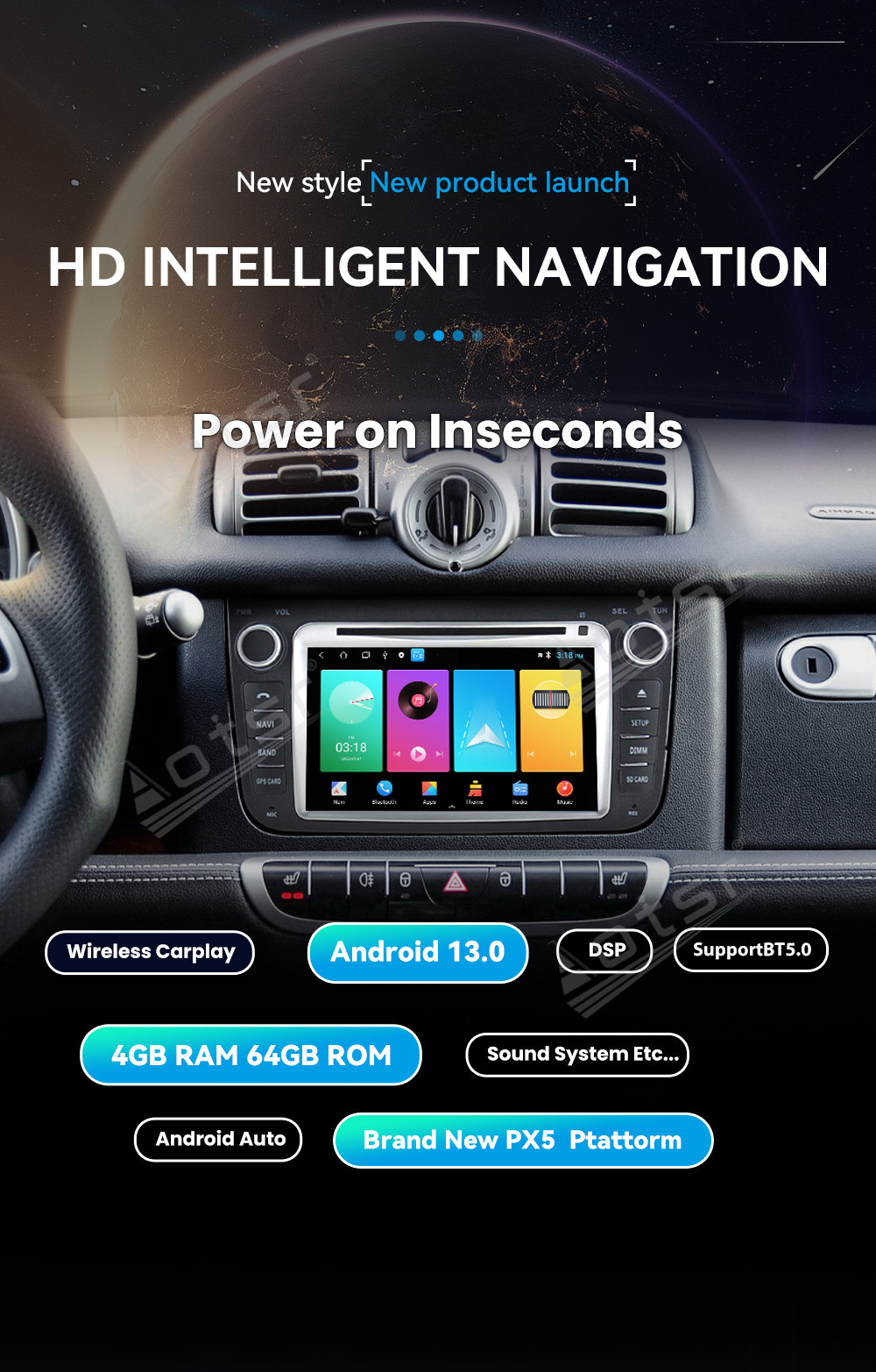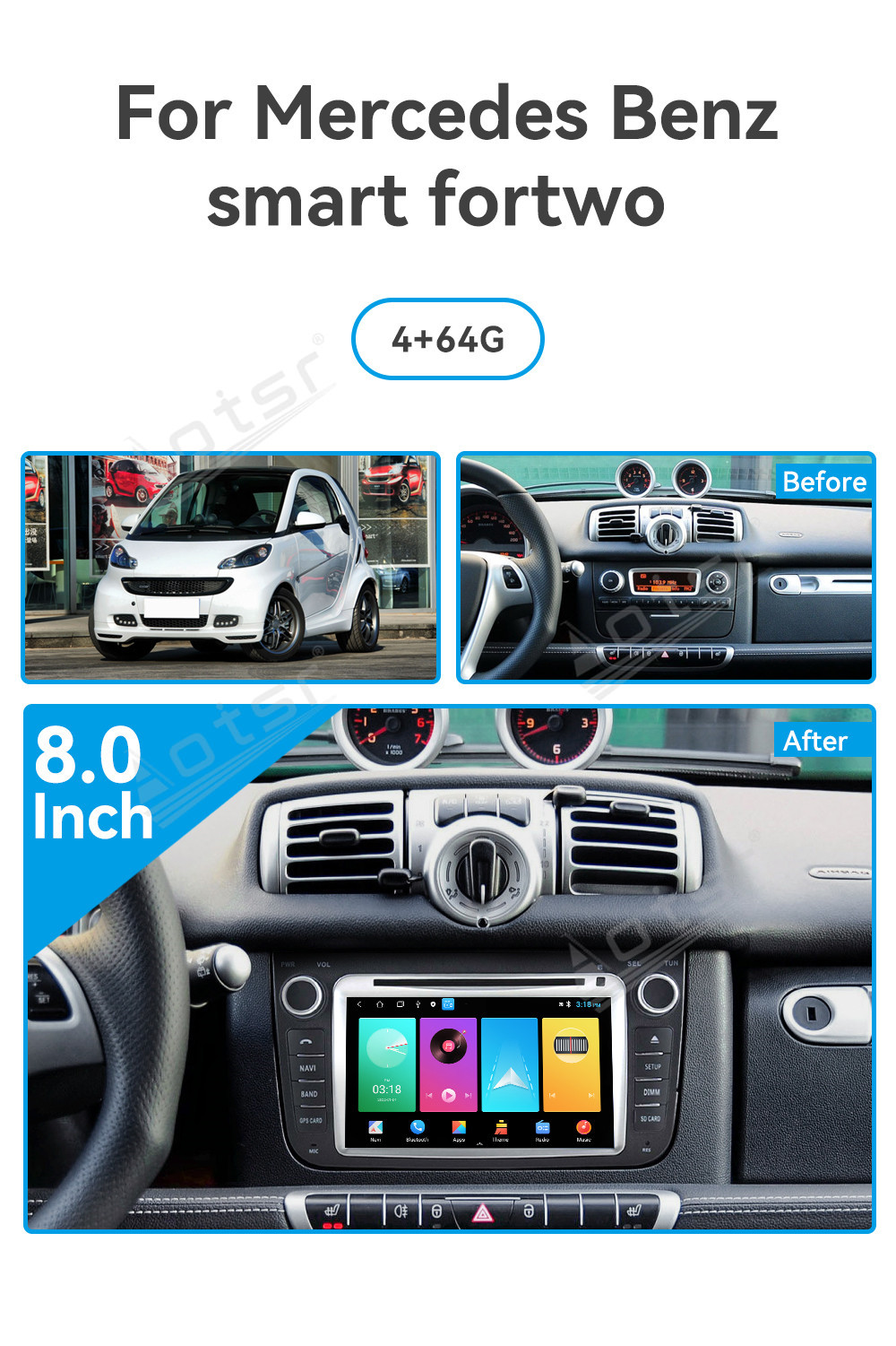 Upgrade your car's audio and navigation system with our top-of-the-line 8-inch Android 13.0 Multimedia GPS navigation for Benz Smart fortwo 2013+. Featuring a powerful Stereo Receiver DSP Unit, this product ensures exceptional sound quality. With Carplay Android auto functionality, enjoy seamless smartphone integration. Choose between 4-64GB or 6-128GB storage options for your convenience. Elevate your driving experience with our DSP Carplay system.