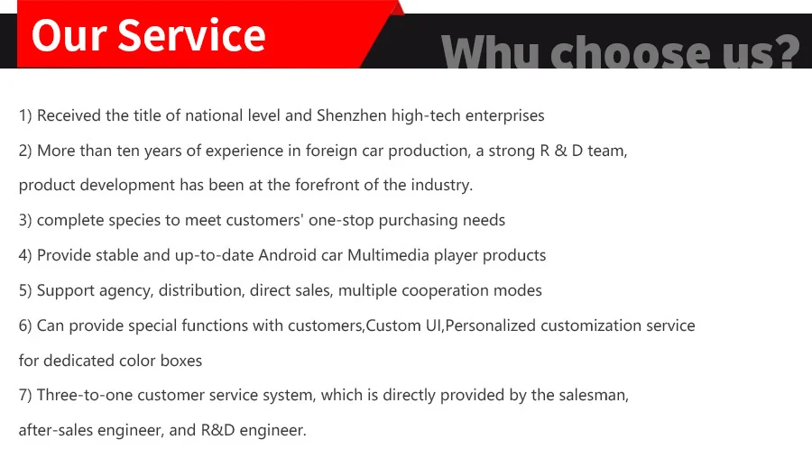 2. about after-sale service-we provide one year warranty. During the YEAR ever since the deal date, no matter for what reason the product needs return to China for repair, you are up to pay the freight from your country to China, after fixing it we will send it back to you at our cost, this is fair for both parties and it is well recognized by international business rules. Supposed it is new product arriving with damage or defect, our team will communicate with you, send spare parts to you for local repair,repairing fee local paid by buyer, in case that local repair is unavailable, you can return the product to us and pay the freight, after the repairing we prepay the freight and send it back