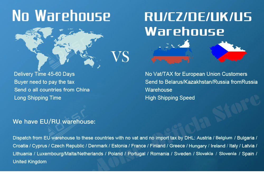 - Fast shipping to your address from our RU/CZ/DE/UK/US warehouse 2. No extra VAT fees