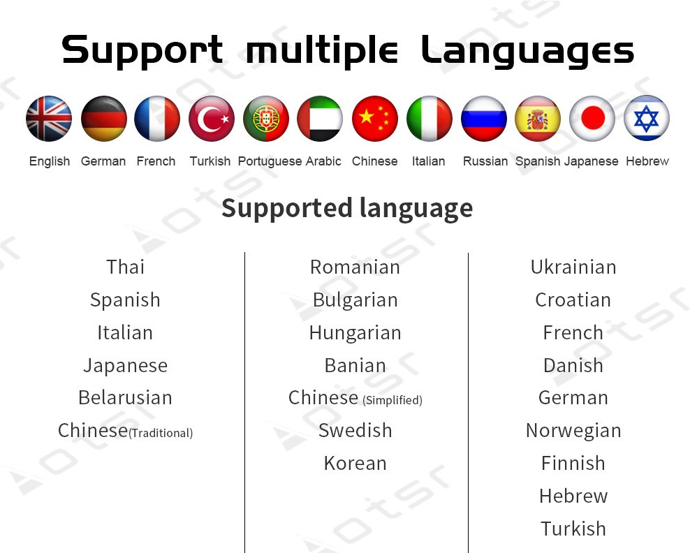OSD Language: English / Russian / French / German / Spanish / Italian / Arabic / Portuguese / Turkish / Thai / Polish / Hebrew...all 70 language