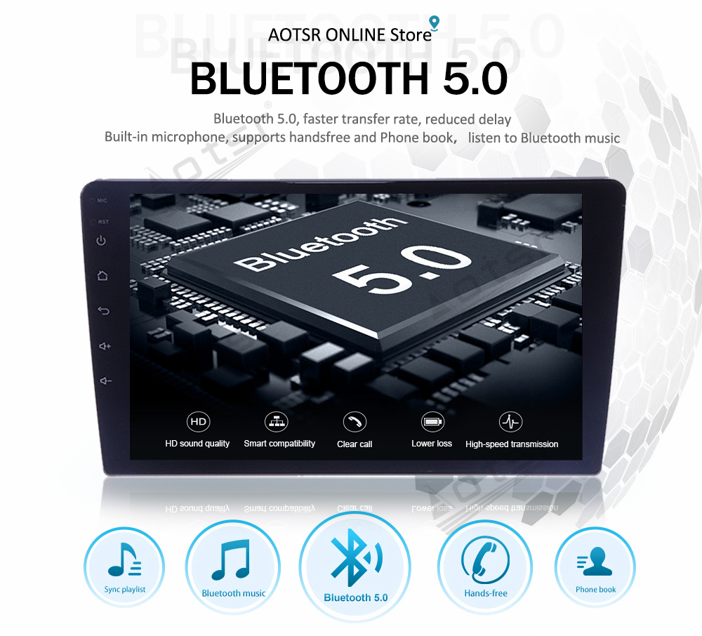 6. Bluetooth 5.0 Hand-free phone call Synchronize contact list, support NX TX ATTX.