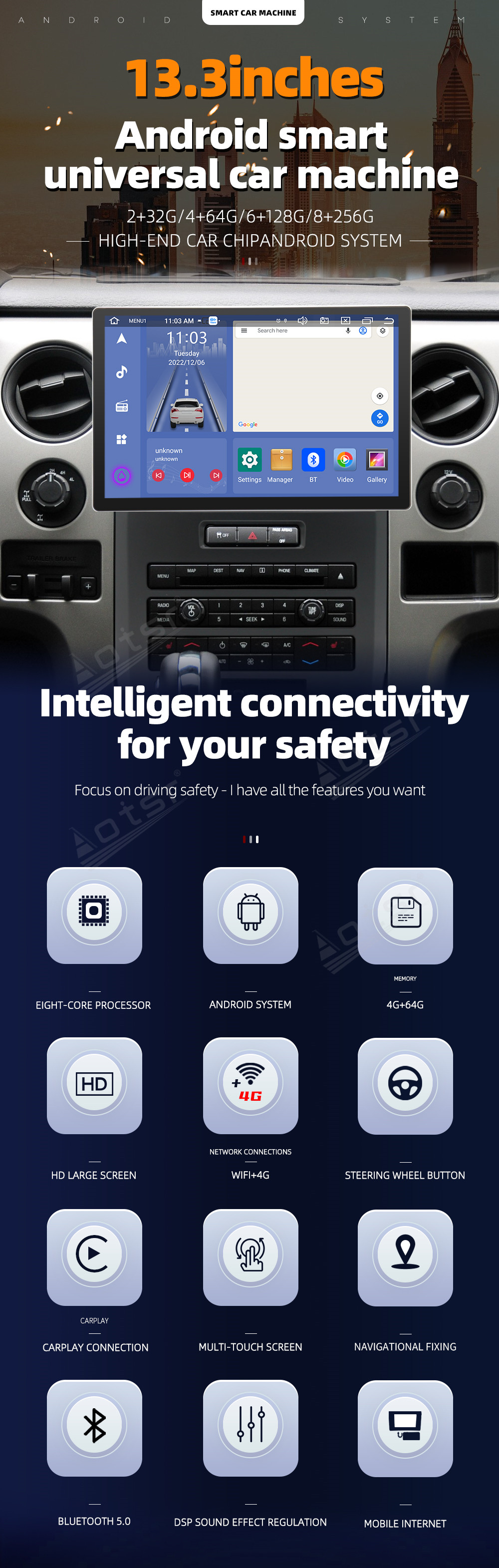 13.3 Inch Android 12 Auto For Ford Raptor F150 2008-2014 Car Multimedia Player GPS Navigation Auto Radio Stereo Head Unit