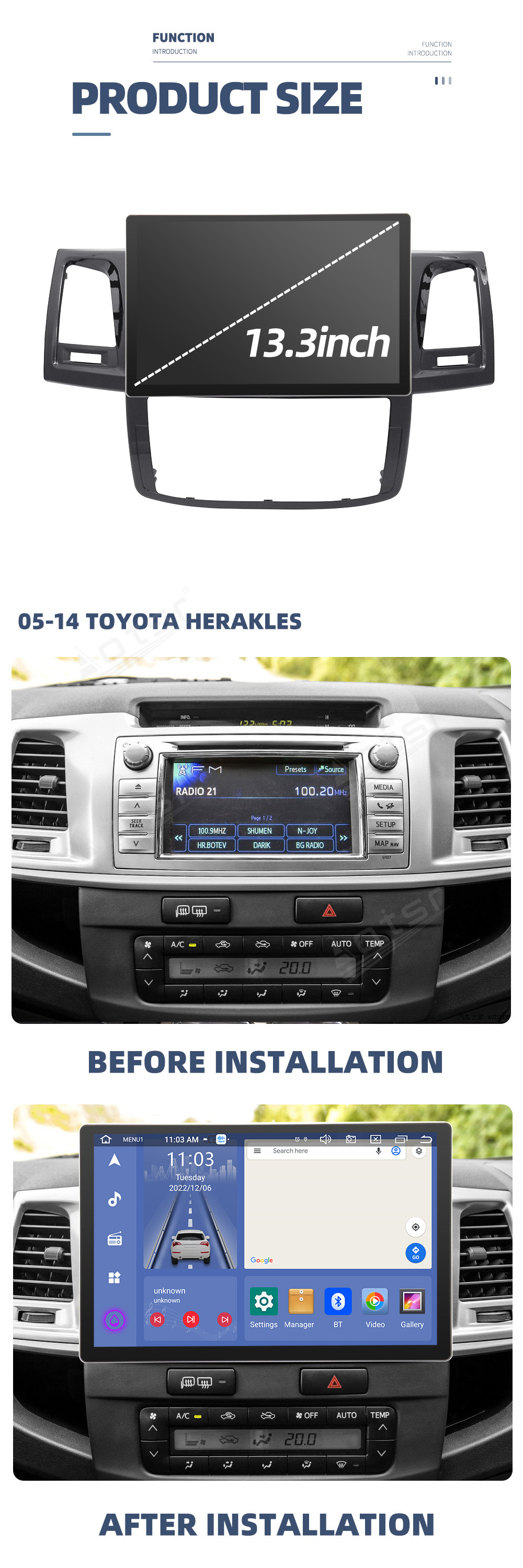 13.3 Inch Android 12 Auto For Toyota Hilux 2005-2014 Car Multimedia Player GPS Navigation Auto Radio Stereo Head Unit