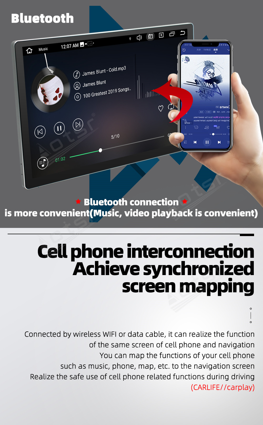 | Bluetooth | Built-in BT5.0, Bluetooth music, phonebook, hands free |