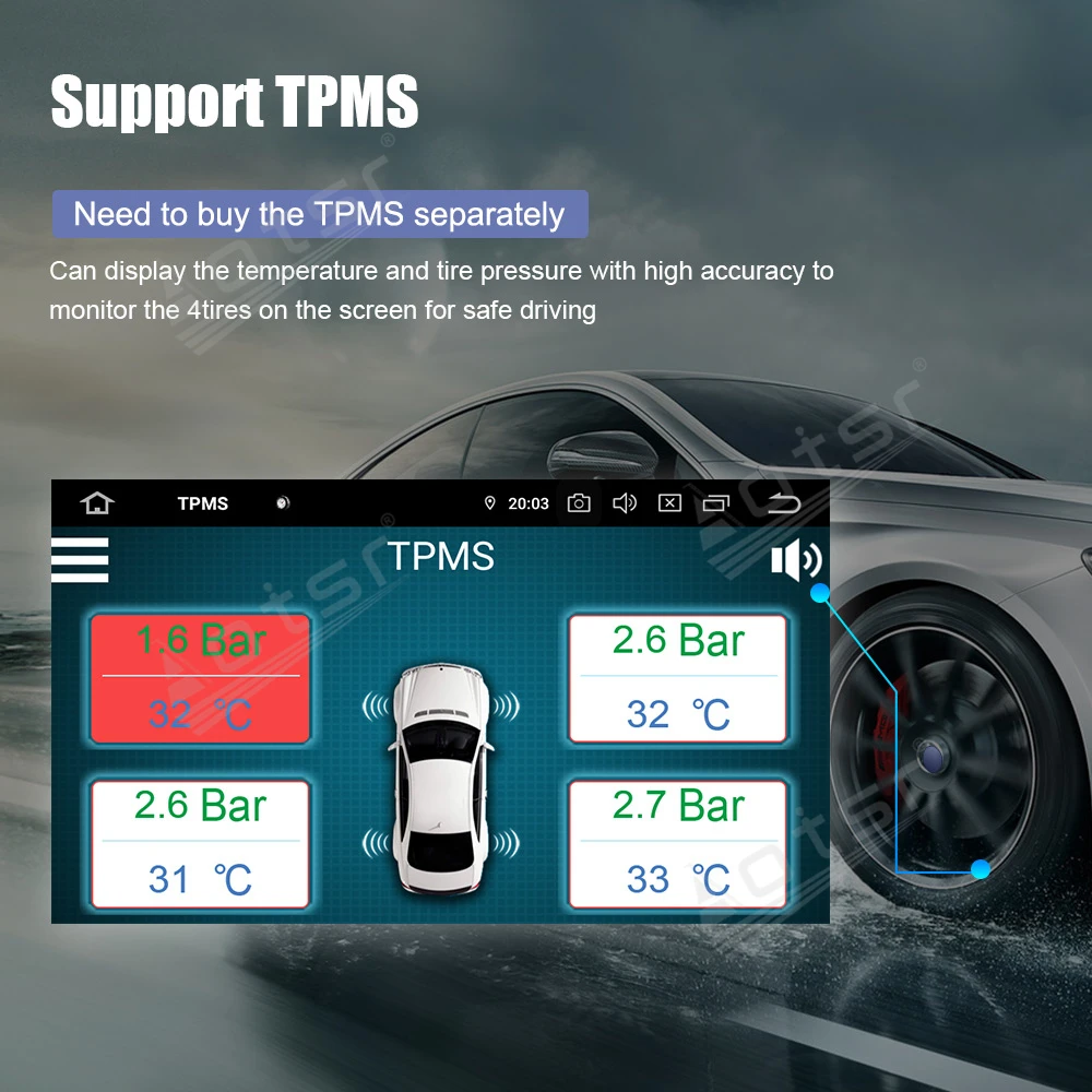 1, support DVR function: support front-end DVR, record driving life, make the journey more secure. 2, support rear view camera,:automatically work when reversing, can display the reverse track. 3, support for external DAB receiver (operated by Toush screen) 4, OBD supports OBD II: car diagnostic tools, you can know your car status anytime, anywhere. Can buy OBD dongle from us 5, support for digital TV: can support DVB-T2 / ISDB-T, with our DVB-T2 / ISDB-T box and connector, can run on our car DVD screen, 6, support carplay: support Android AUTO and Carplay 7, support tire pressure monitoring: real-time view of tire pressure, guarding traffic safety. 8, support 4G module: connect to the Internet anytime, anywhere, share the scenery with friends.