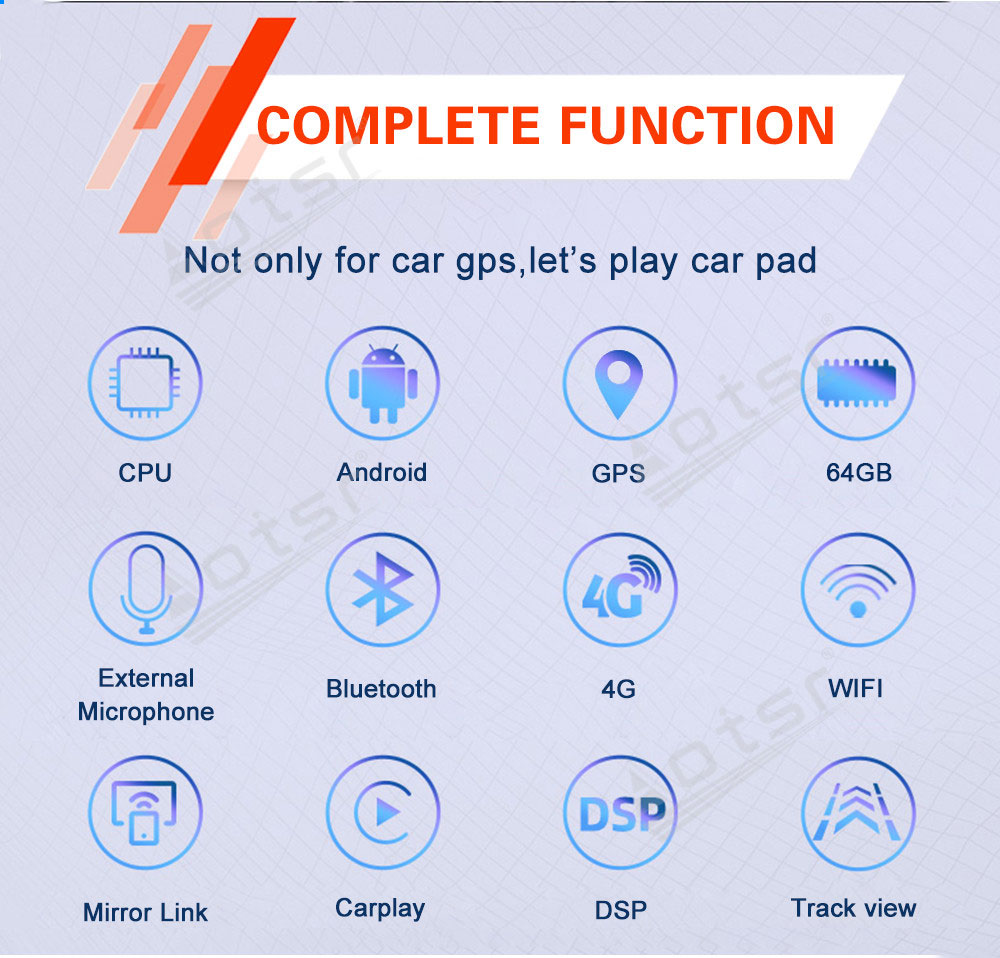 The Android radio is an Android tablet that includes the ability to install Android apps and GPS navigation with the navigation app of your choice. Other features include the ability to connect MirrorLink with iPhone or Android phones, Wi-Fi connectivity, Bluetooth music and phone calls, AM/FM radio, etc, while most OEM features are retained. Additional accessories such as Bluetooth adapter, digital TV tuner, USB DVD player, aftermarket backup camera, etc.