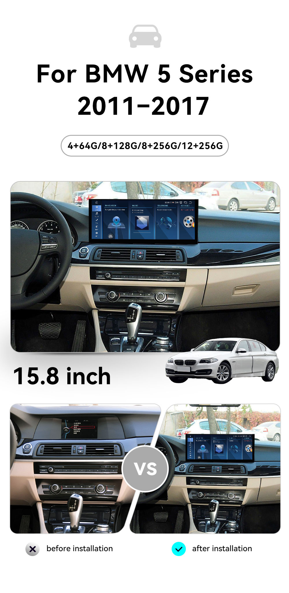 5. (Plug and Play) Designed specifically for BMW 5 Series 2011-2017 CIC model, the standard interface can be installed without changing the wiring. The system supports 20 languages, etc. If you are unsure if it is supported, please send me a photo of your car radio before or after placing an order, and I will help you confirm if it is supported