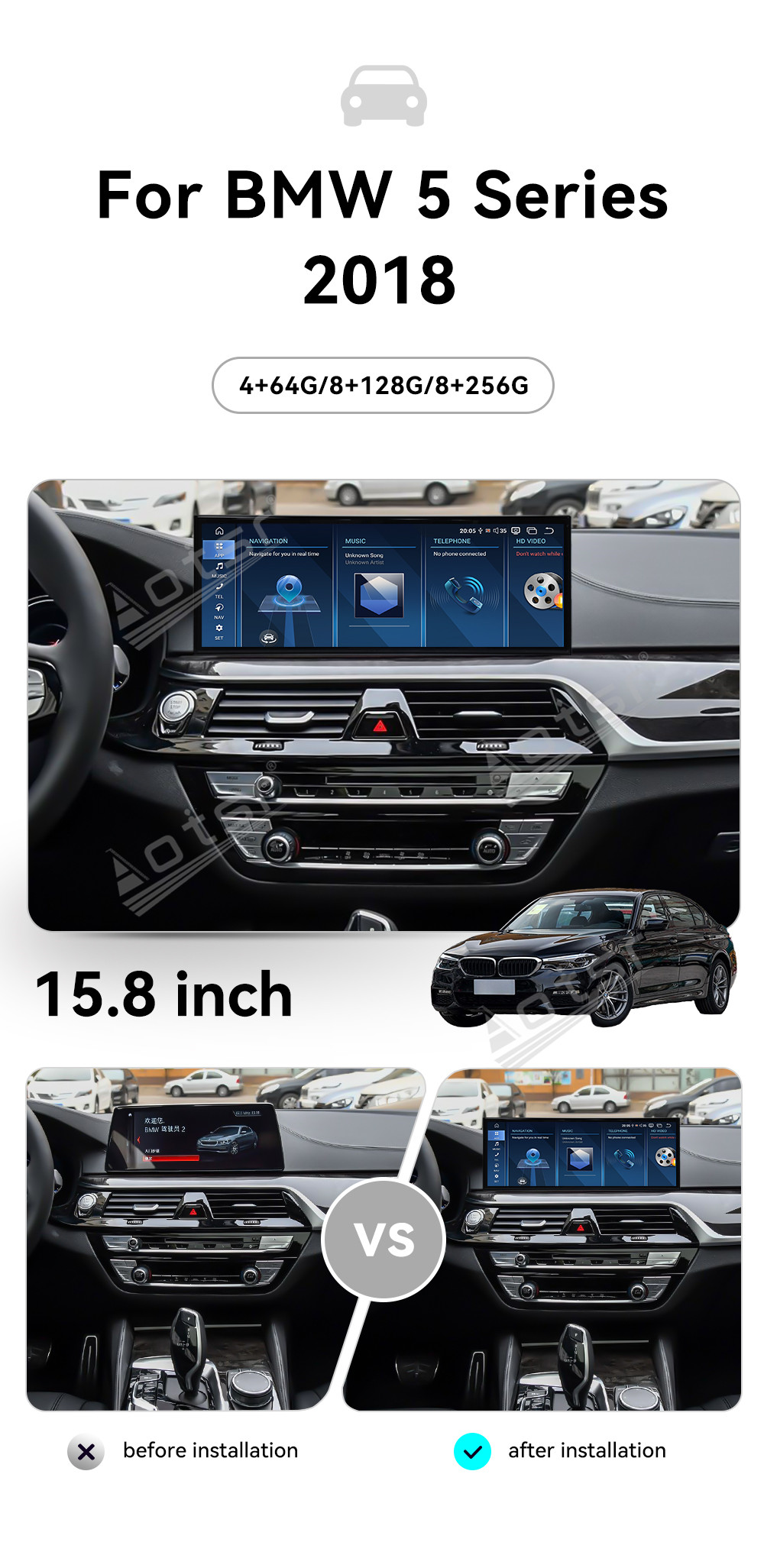 Aotsr 15.8 inch Android 14 Car Radio for BMW 5 Series G30 2018 Wirless Carplay GPS Navigation Screen Upgrade Multimedia Player
