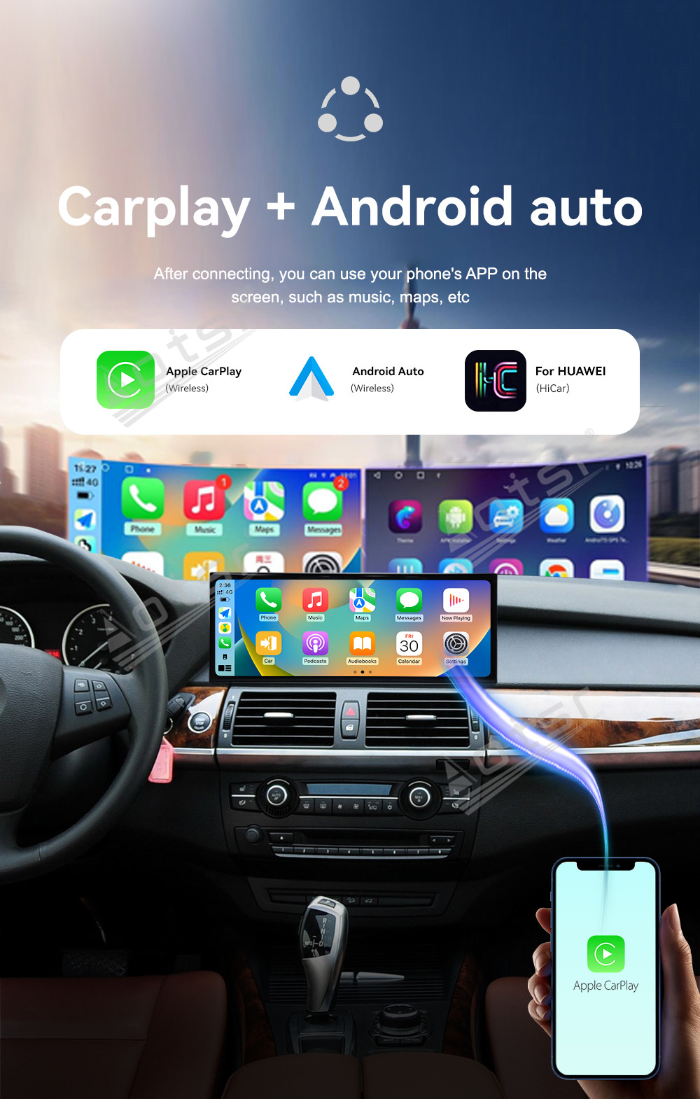 Aotsr 15.8 inch Android 14 Car Radio for BMW X5 F15 2013-2017 Wirless Carplay GPS Navigation Screen Upgrade Multimedia(NBT system)