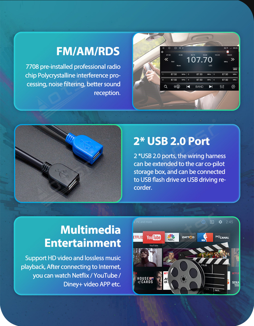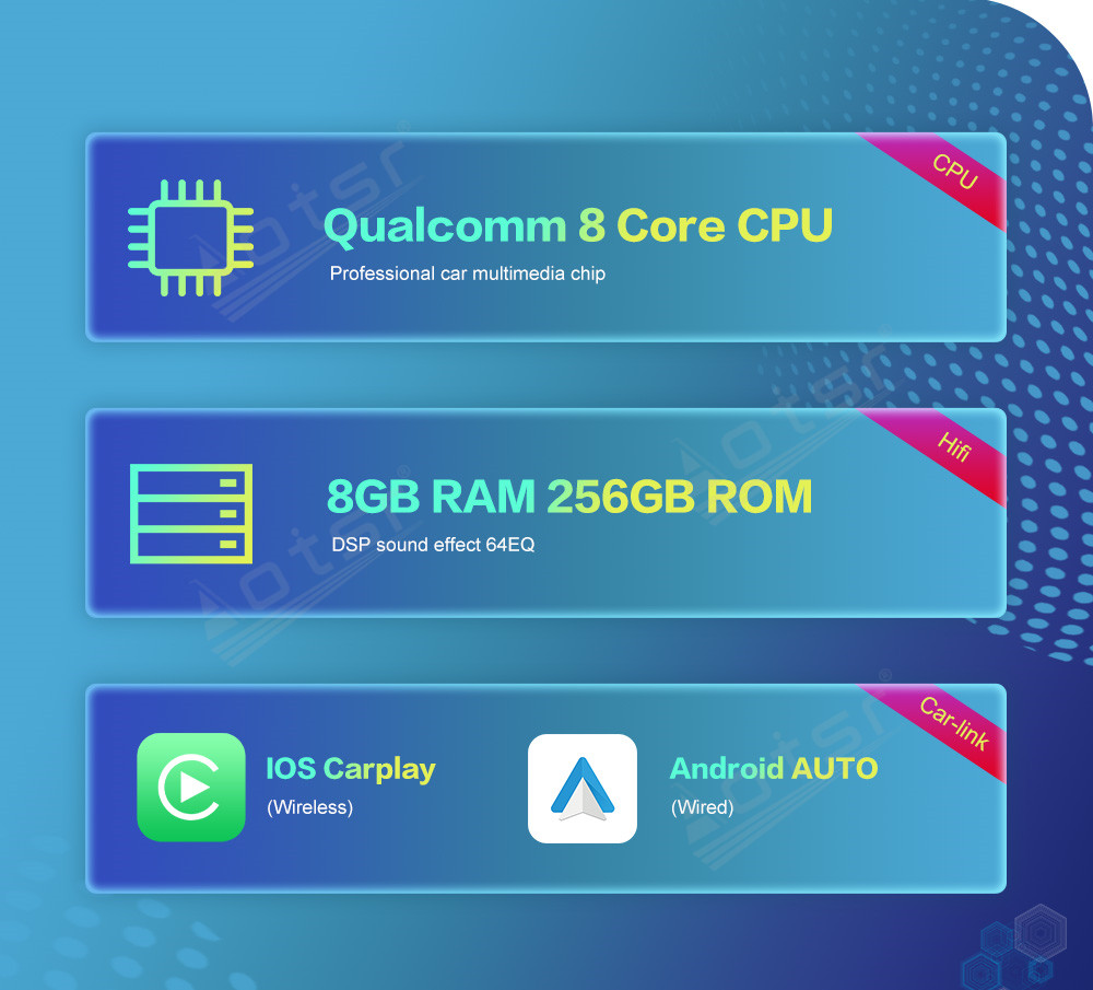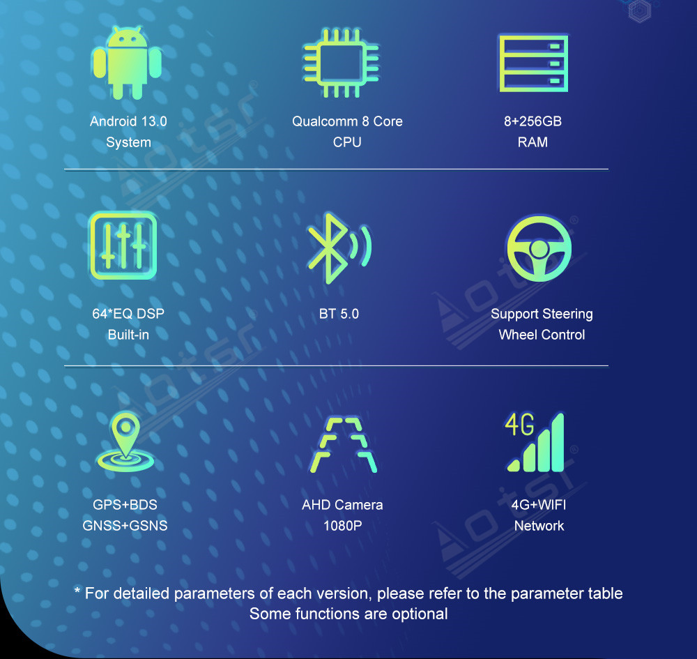♦. Built in WIFI/4G/BT/GPS/Carplay/Android auto