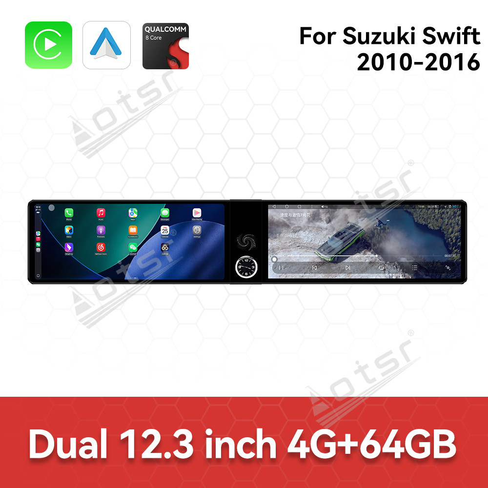 Dual 12.3 inch For Suzuki Swift 2010-2016 GPS Navigation Android 13 Car Radio CarPlay Multimedia Player Head Stereo Unit HD Screen