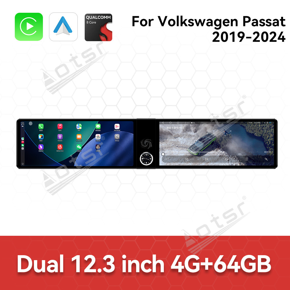 Dual 12.3 Inch GPS Navigation For Volkswagen Passat 2019-2024 Android 13 Car Radio CarPlay Multimedia Player Head Stereo Unit HD Screen