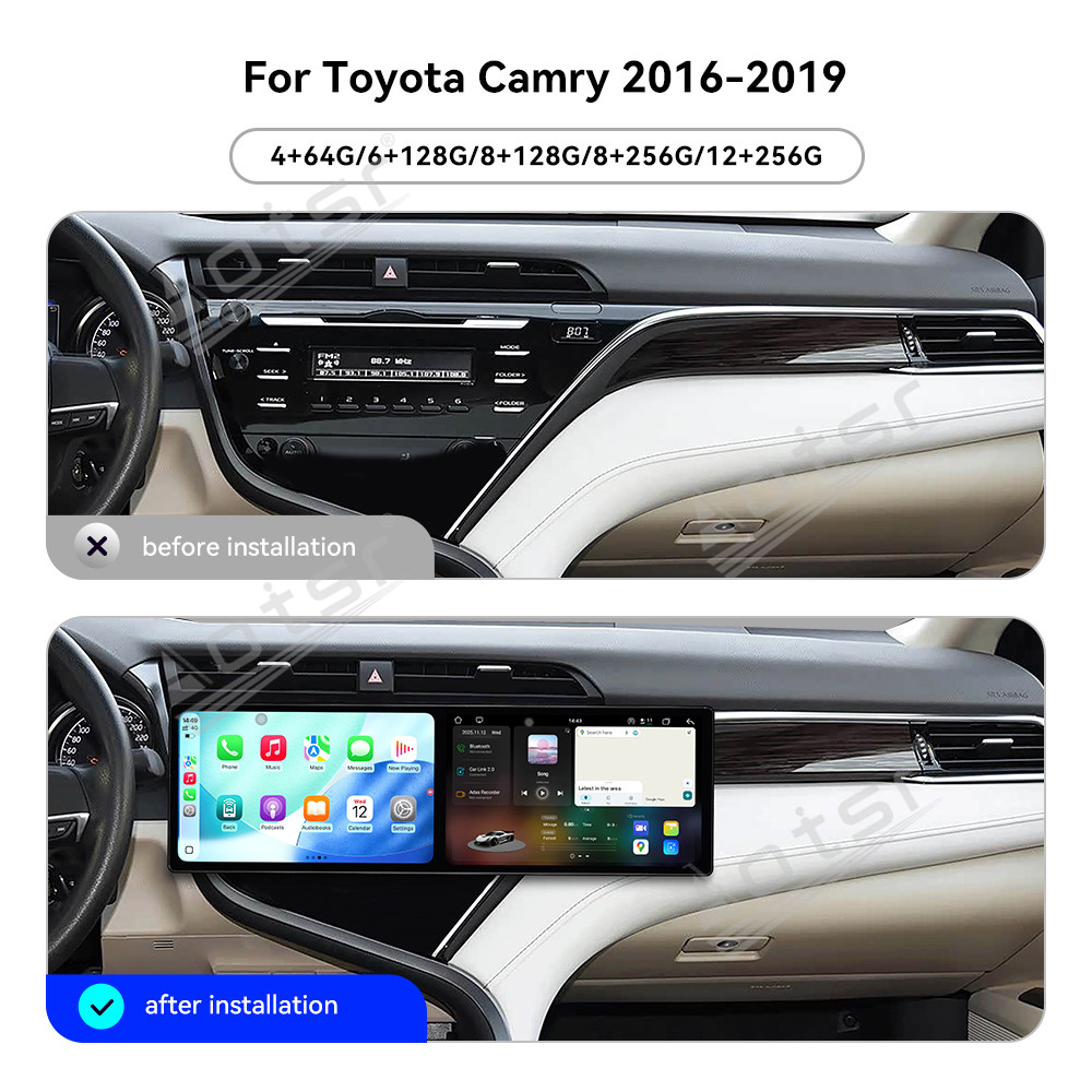 Dual 9.1 inch Screen Car Radio For Toyota Camry 2016-2019 Android 15 Multimedia Player GPS Navigation Auto DSP Stereo Host