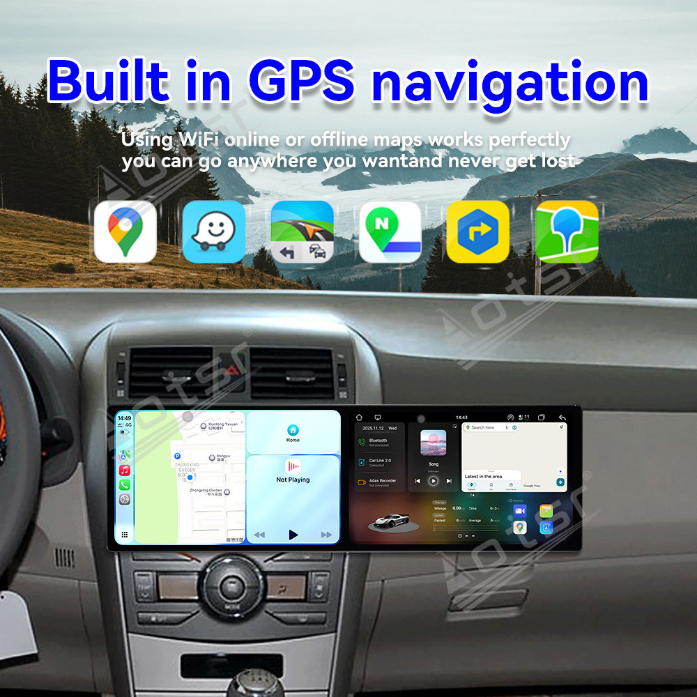 Dual 9.1 inch Screen Car Radio For Toyota Corolla 2007-2013 Android 15 Multimedia Player GPS Navigation Auto DSP Stereo Host