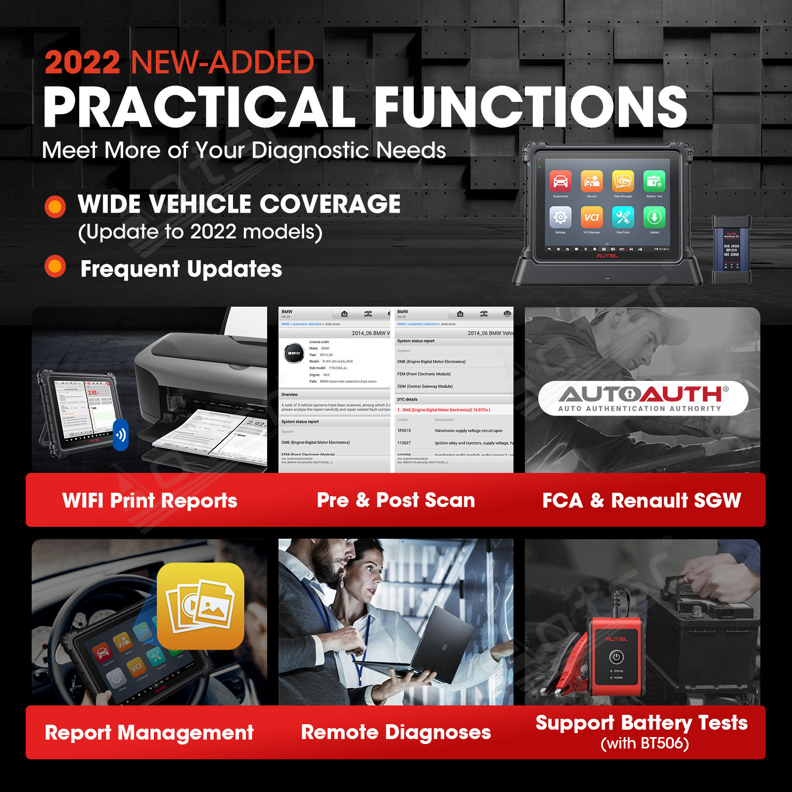 Support Dual Wireless Mode, the new host and communication box are connected through Wi-Fi, Wi-Fi communication transmission speed is faster\more stable\strong anti-interference ability, the actual test wireless distance is more than 50m, and the diagnosis speed is more than 30% faster.