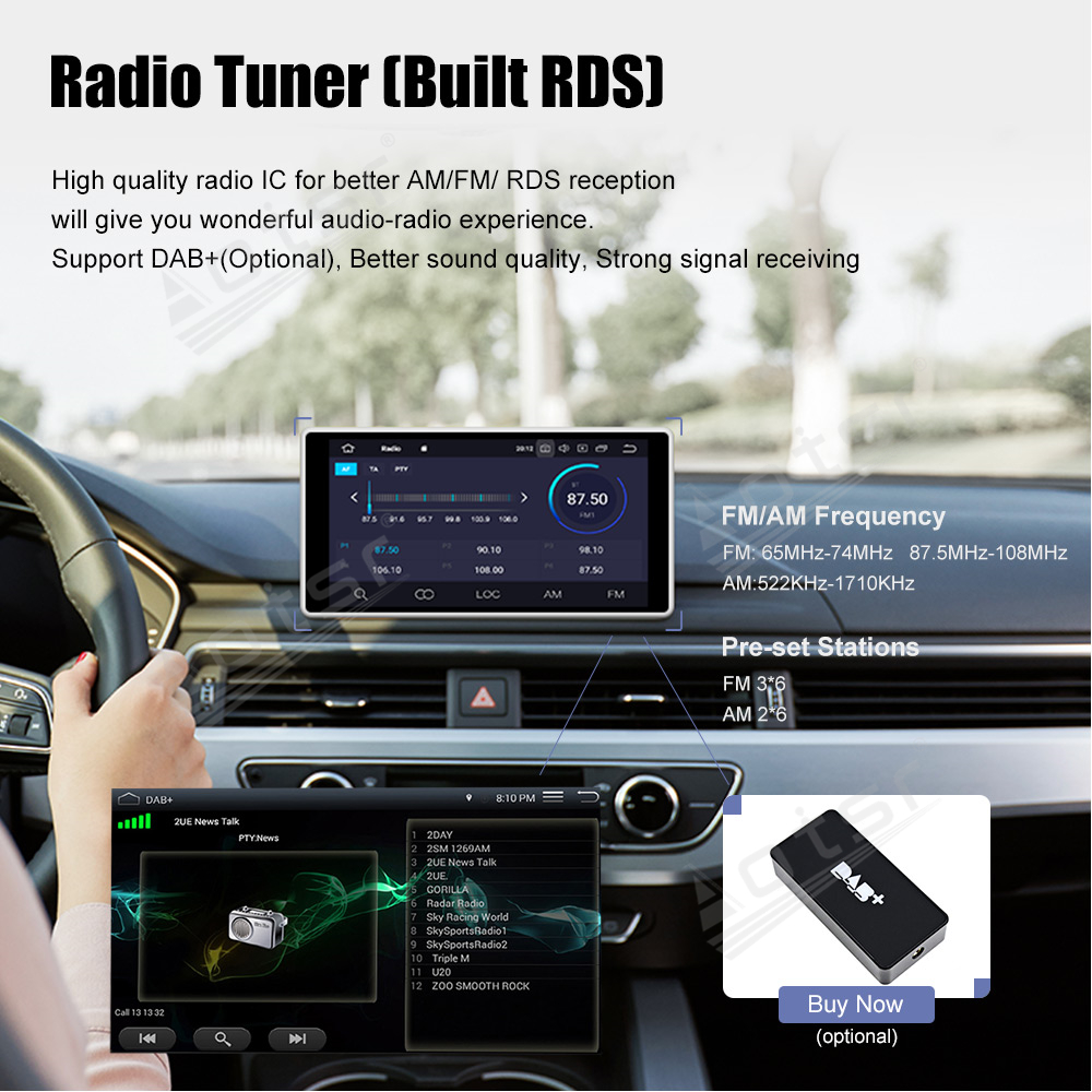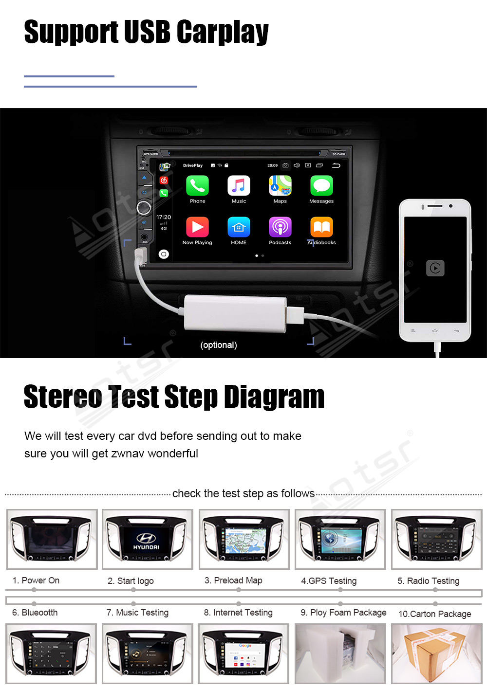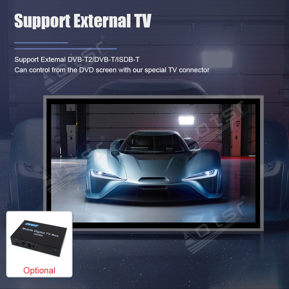 1, support DVR function: support front-end DVR, record driving life, make the journey more secure. 2, support rear view camera,:automatically work when reversing, can display the reverse track. 3, support for external DAB receiver (operated by Toush screen) 4, OBD supports OBD II: car diagnostic tools, you can know your car status anytime, anywhere. Can buy OBD dongle from us 5, support for digital TV: can support DVB-T2 / ISDB-T, with our DVB-T2 / ISDB-T box and connector, can run on our car DVD screen, 6, support carplay: support Android AUTO and Carplay 7, support tire pressure monitoring: real-time view of tire pressure, guarding traffic safety. 8, support 4G module: connect to the Internet anytime, anywhere, share the scenery with friends.