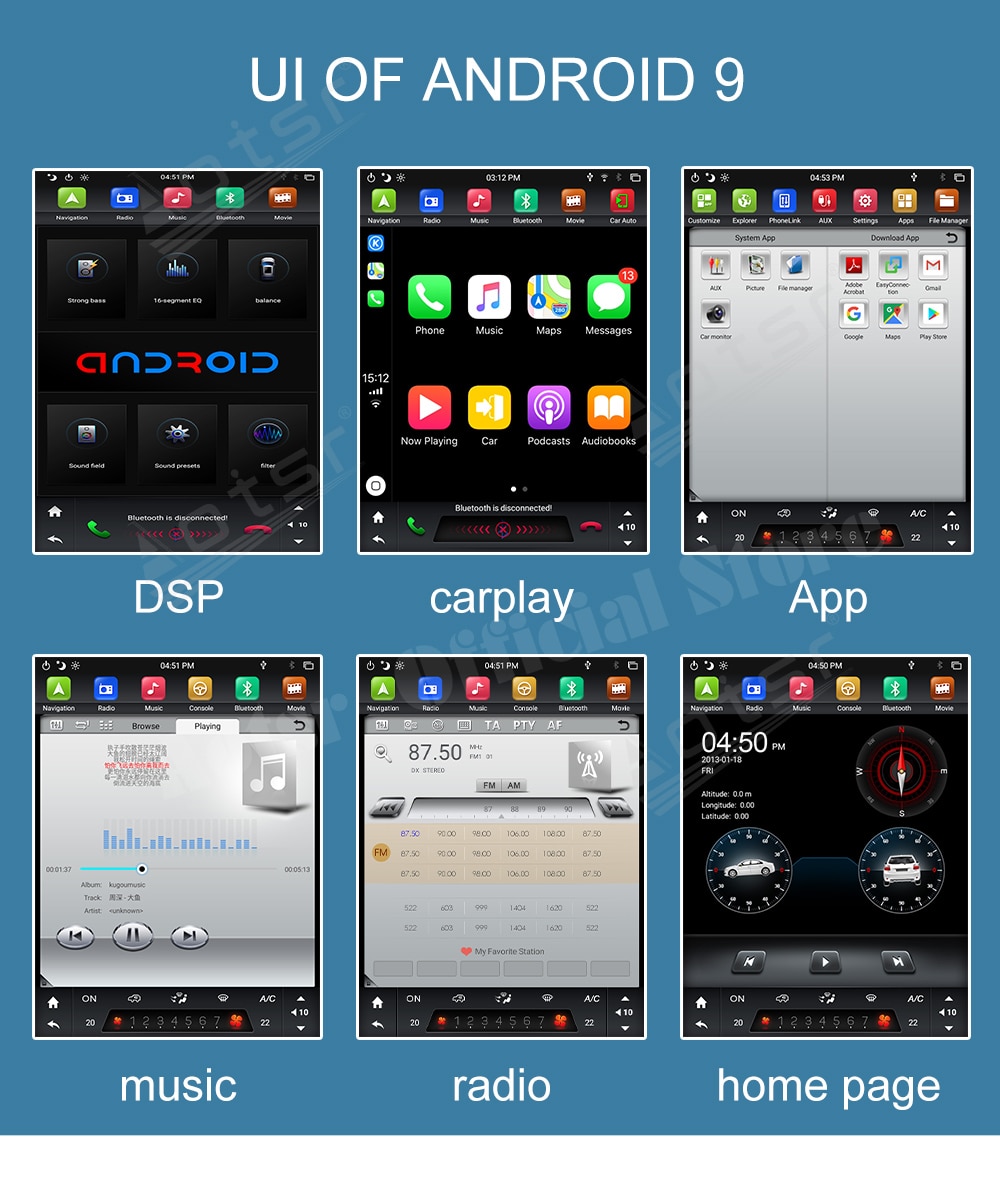 Tesla Style Android 9.0 4K HD 4GB+64GB Car Radio GPS Navigation Auto Stereo Head Unit Multimedia Player Touch Screen Bluetooth WIFI
